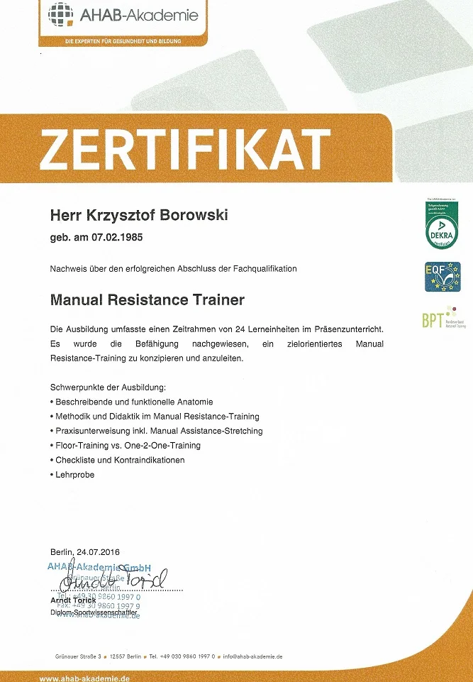 My name is Christoph Borowski, group fitness instructor, personal trainer and bodyworker.